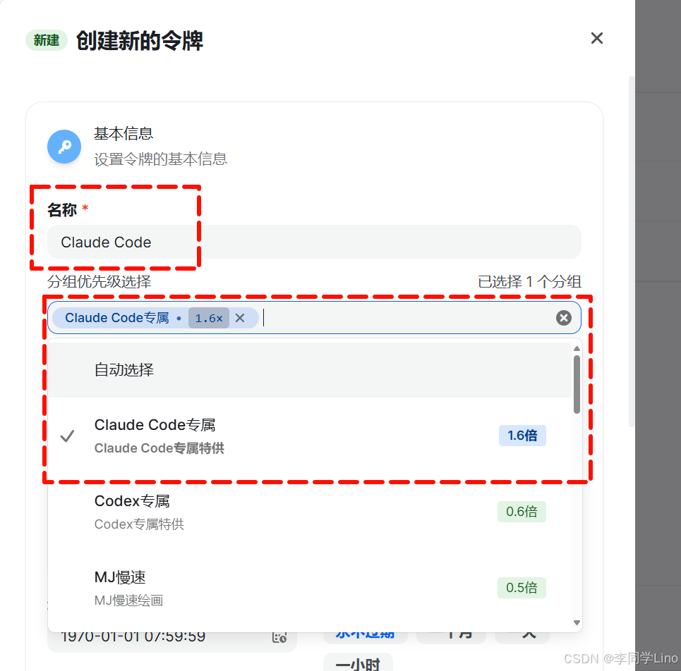 填写好名称和选择好分组,这里分组一定要选择【Claude Code专属】