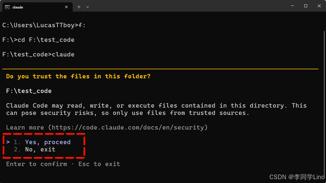 输入claude之后,来到第一个选项,直接默认选择继续即可。
