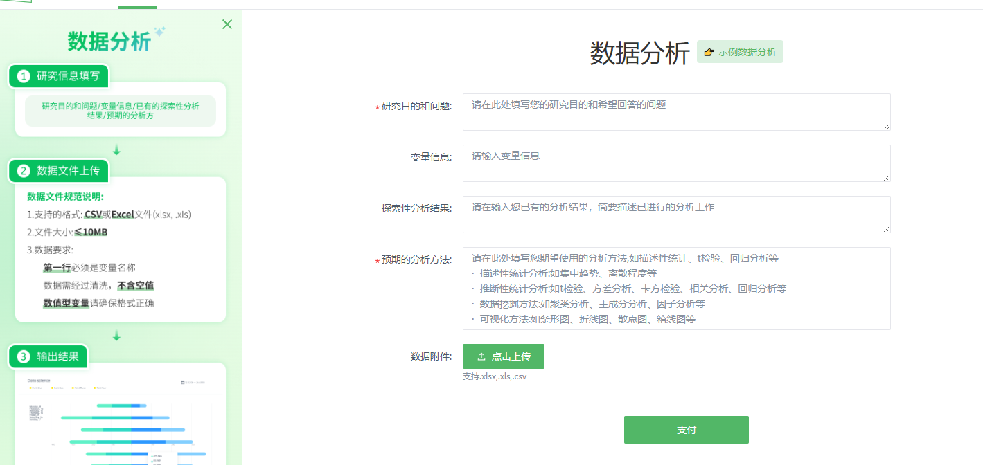 - 文件上限:10MB,适用于课程论文、小规模调查数据;