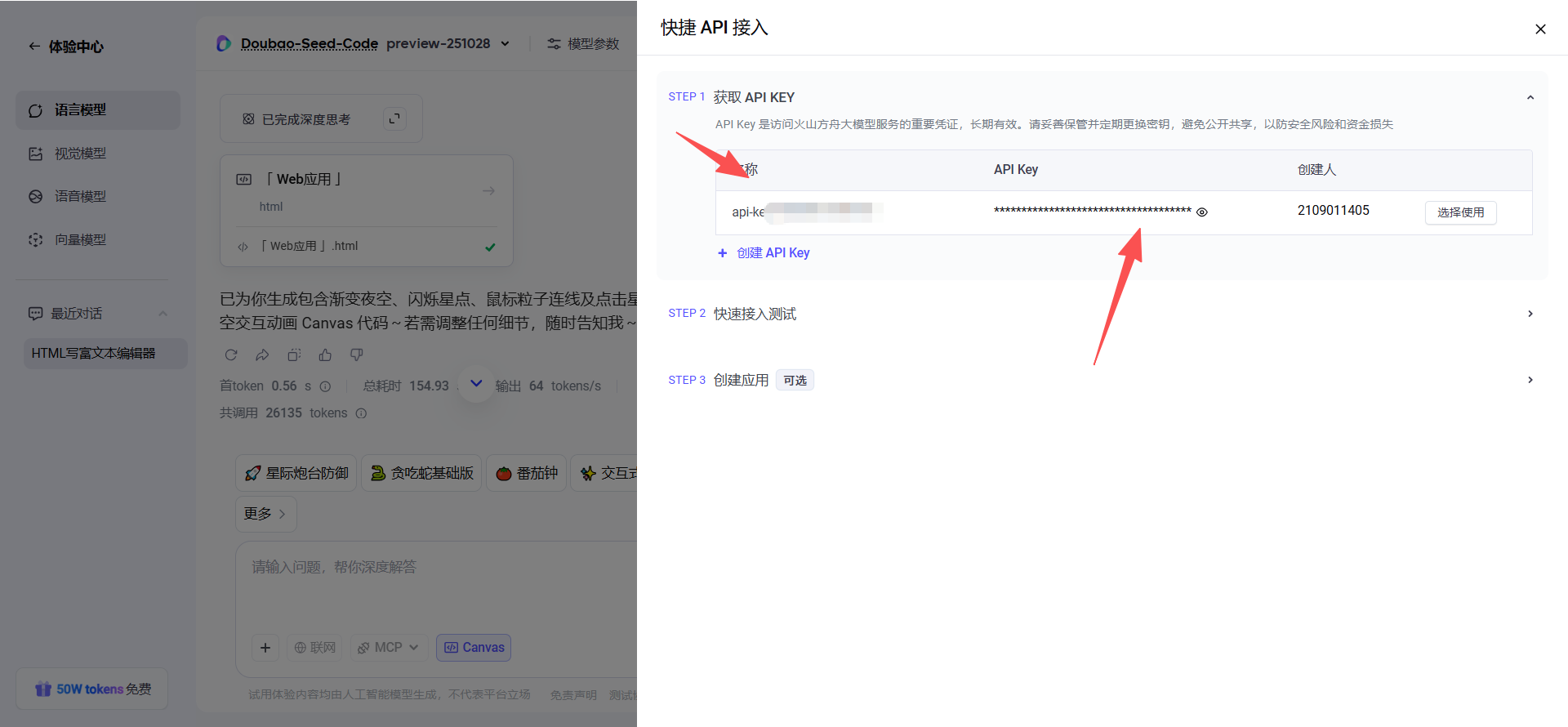 对于需要将Doubao-Seed-Code集成到自有系统或开发工具中的团队和开发者,API调用是最灵活高效的方式。模型提供了与Anthropic API高度兼容的接口,降低了迁移成本,具体集成步骤如下: