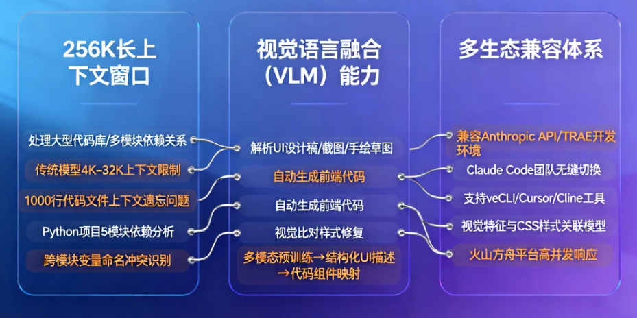 Doubao-Seed-Code的技术架构建立在三大核心支柱之上,共同支撑起Agentic Coding的复杂需求: