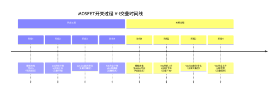物理本质: MOS管并非理想的开关,其在开启和关断过程中存在一个短暂的“过渡区”。在此区域内,漏源电压Vds和漏极电流Id同时处于高位,产生巨大的瞬时功率 Pinstant=Vds(t)×Id(t)Pinstant=Vds(t)×Id(t) 。这个瞬时功率在时间上的积分,就是开关损耗。