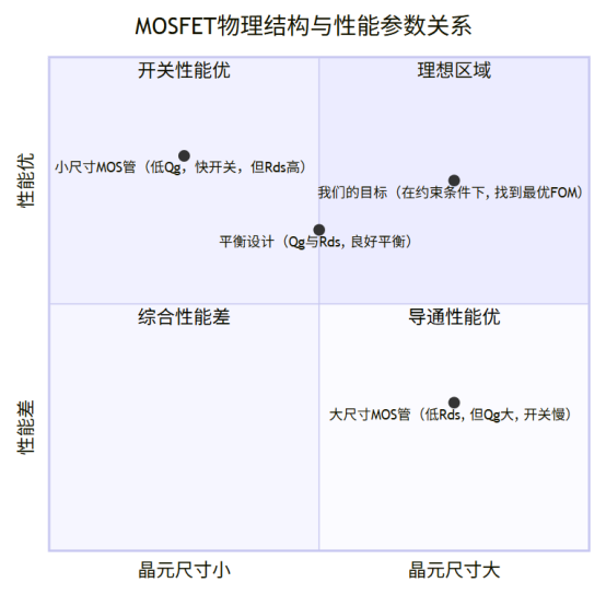 这时,我们发现了电源工程师的核心挑战:Rds(on)和Qg之间存在固有的权衡关系。