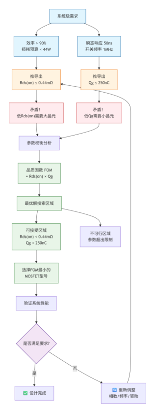 单目标优化是陷阱: 单独追求最低Rds(on)或最低Qg都会导致设计失败。