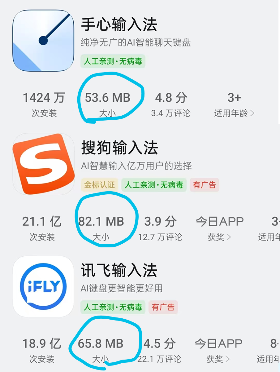 按行业惯例(比如百度输入法或是搜狗输入法),大体积输入法往往意味着: