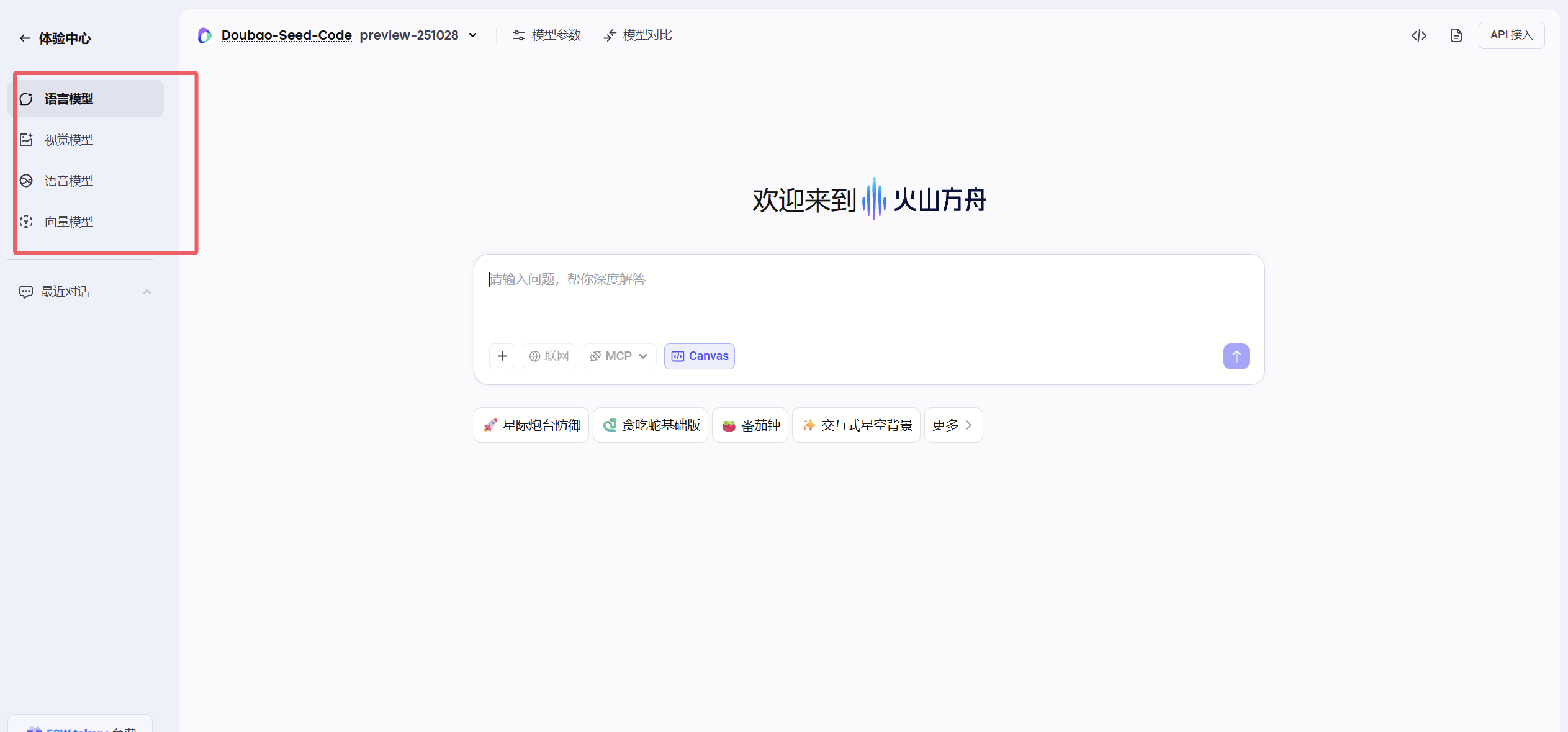 目前Doubao-Seed-Code支持几大主流的模型:语言模型、视觉模型、语音模型、向量模型。接下来我们就用他来实测一下他的原生视觉理解能力吧。