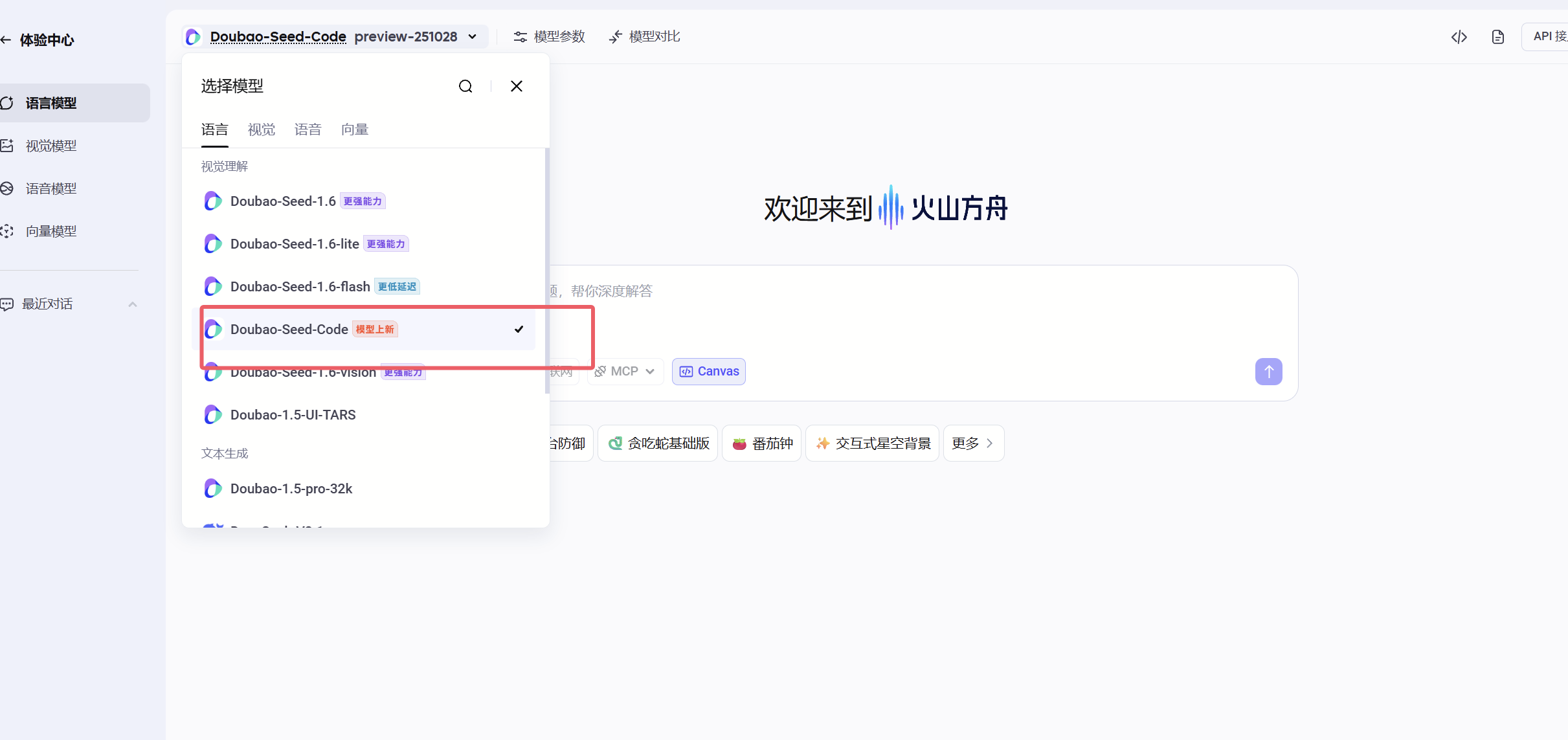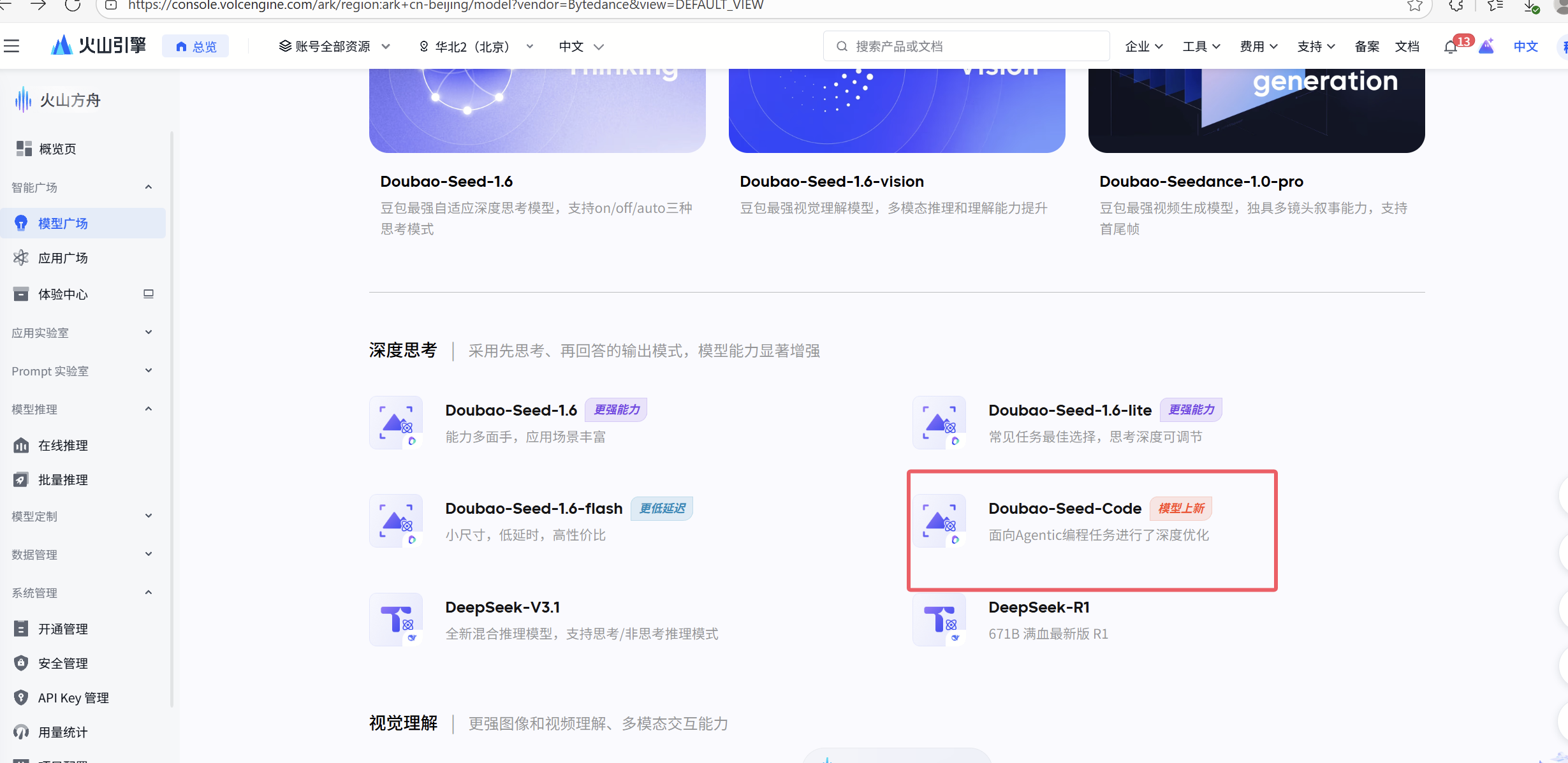 在模型广场可以找到Doubao-Seed-Code: