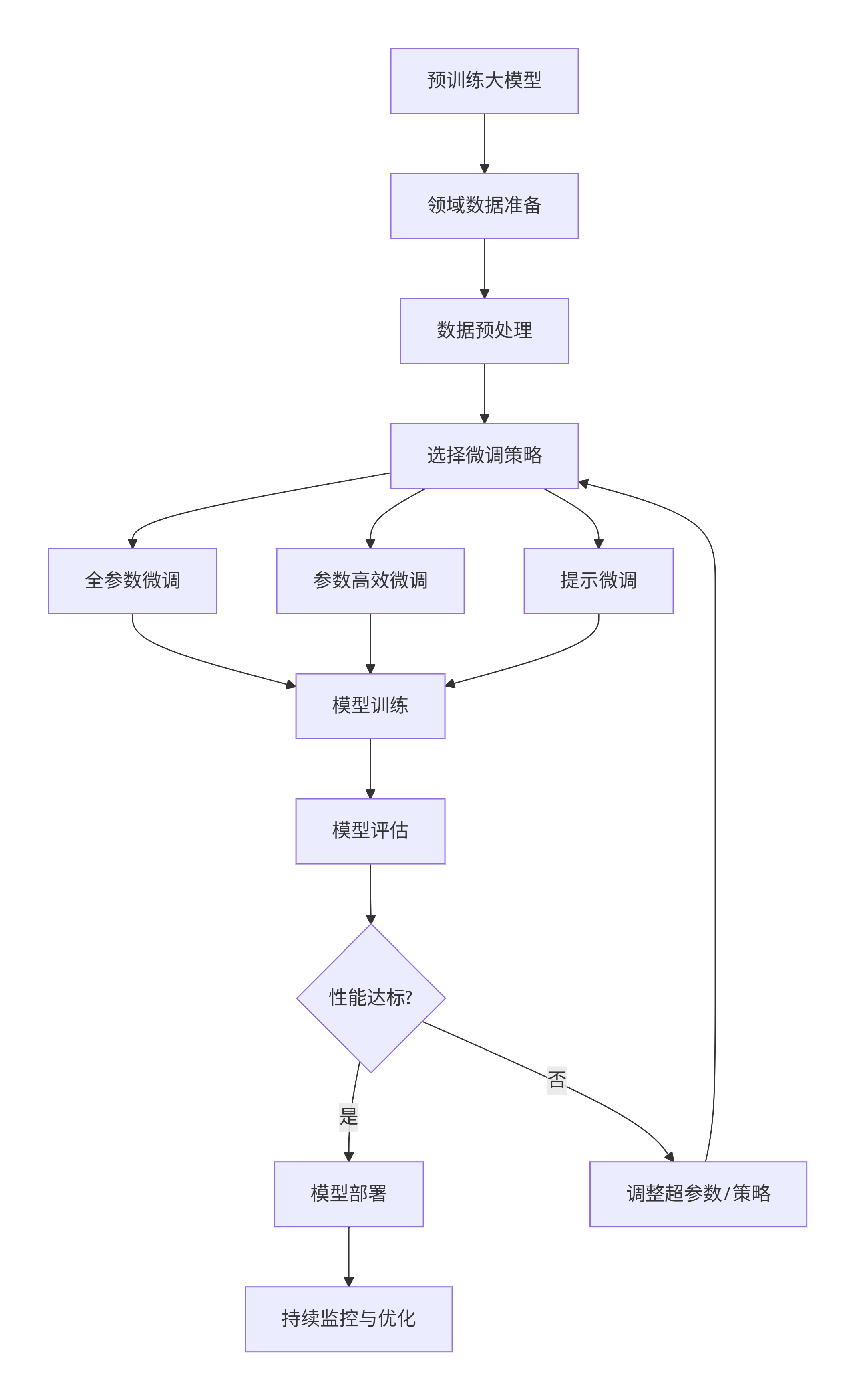 大模型微调是指使用特定领域的数据对预训练大模型进行进一步训练,使其适应特定任务的过程。微调可以在保持模型通用能力的同时,提升在特定任务上的性能。