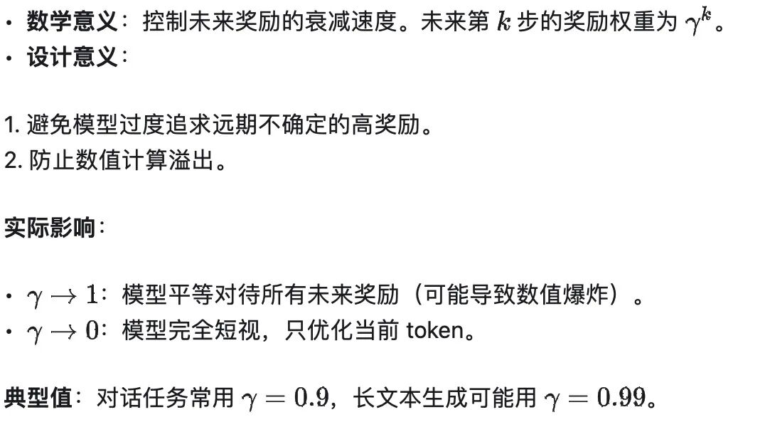 - 数学收敛:无限累积未来奖励会导致数值爆炸,衰减确保收敛。