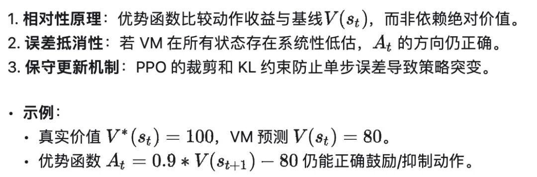 Q13:为什么价值模型存在预测误差,但优势函数仍能引导收敛?
