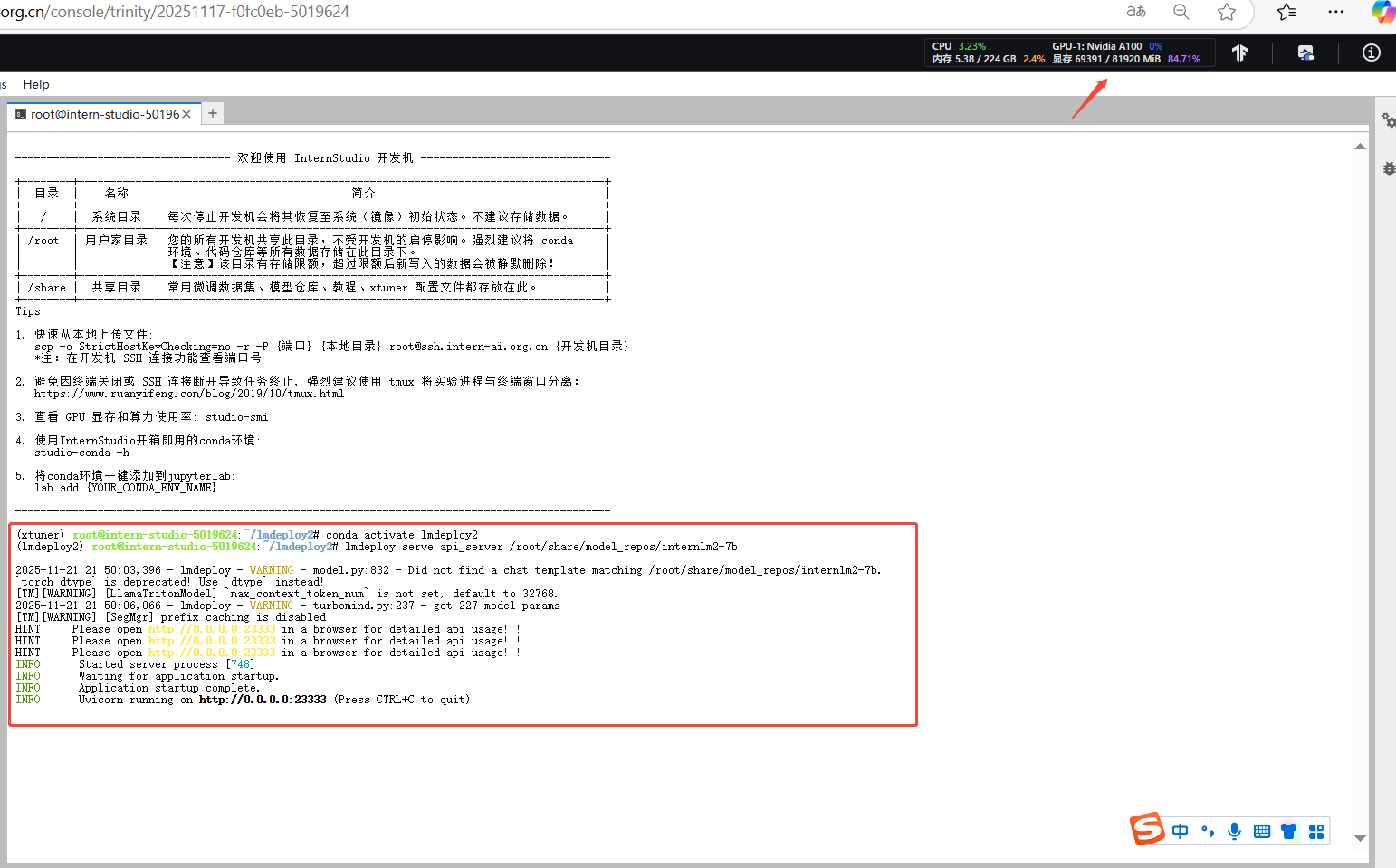 显卡充足可以直接启动,这里使用100%A100演示