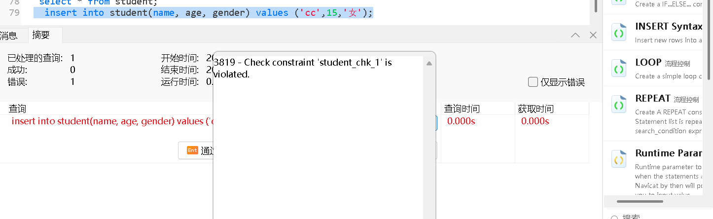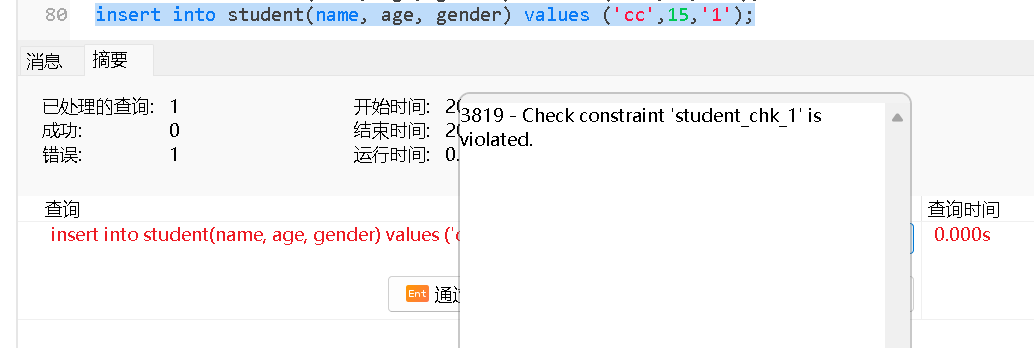 check (age >= 16),check (gender = '男' or gender = '女'));