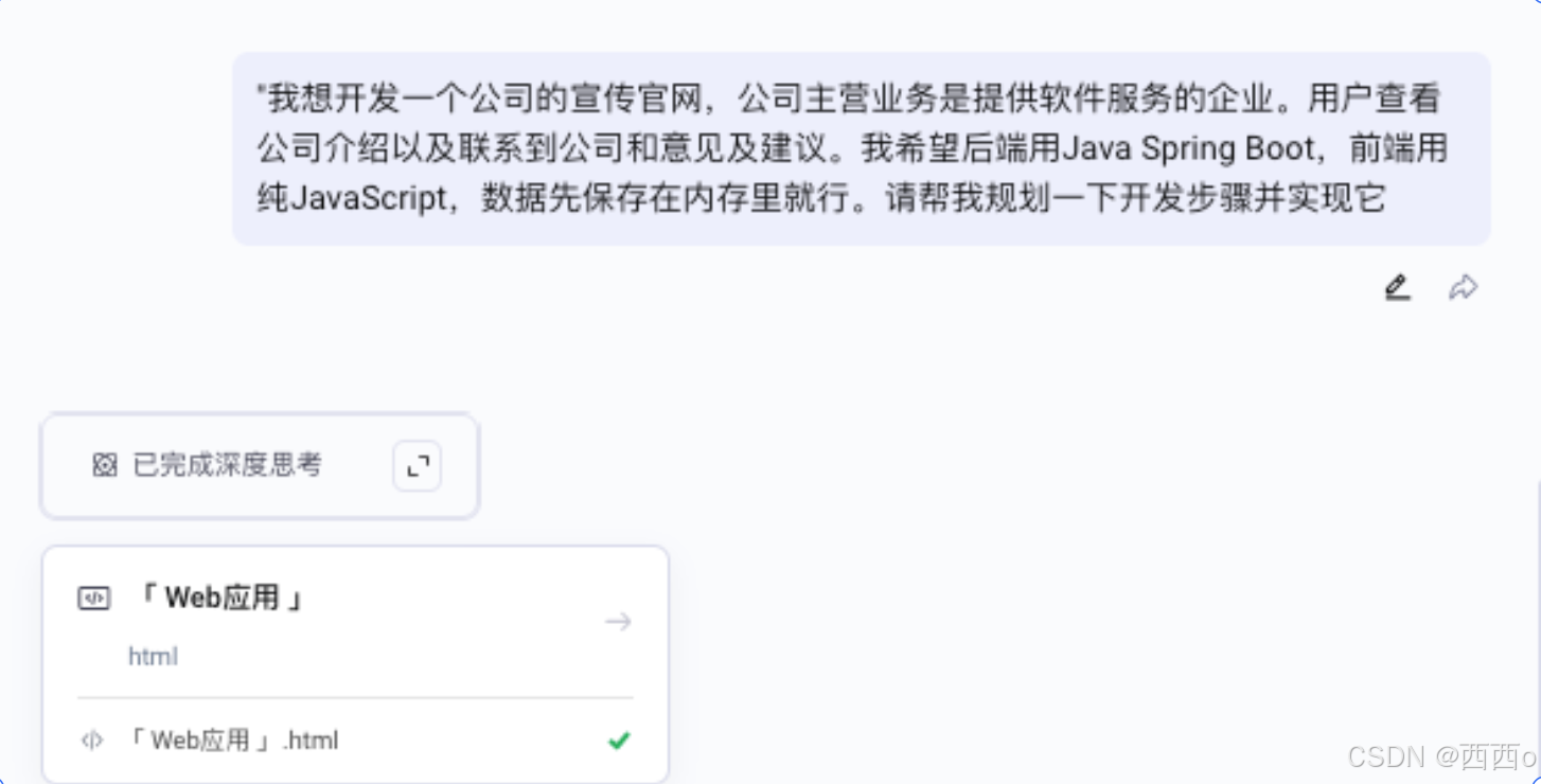 个人思考:模型能够从模糊的商业需求中准确提取关键功能点,并规划出符合企业官网标准的结构,展现了良好的业务理解能力。