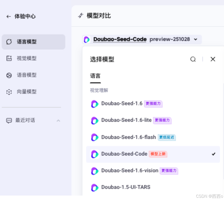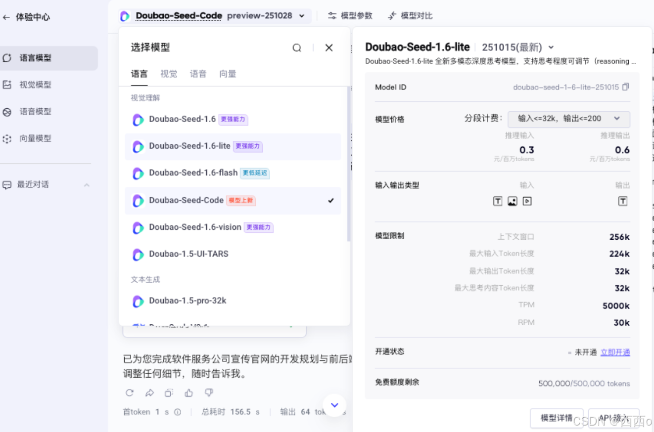 本次测评我才用通过火山引擎体验中心,选择Doubao-Seed-Code,进行轻量级体验