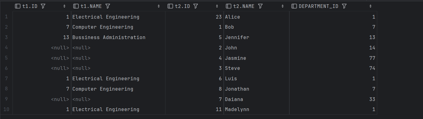 full join students t2 on t1.id = t2.department_id where t1.id is null;