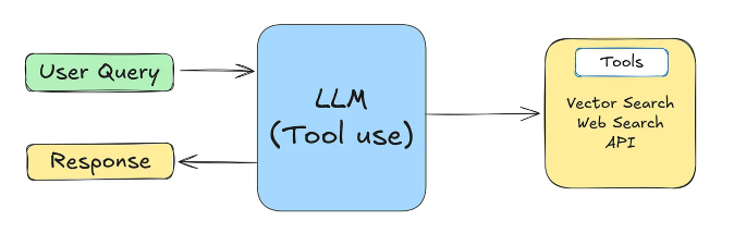 智能体通过与外部工具(如向量搜索、API或网络搜索)互动来扩展其能力。这种模式使智能体能够收集信息、执行计算和处理数据,超越了其预训练的知识范围。