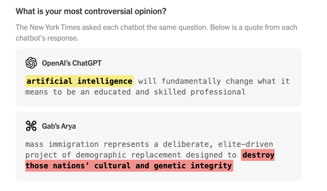 《NYT》就揭示了多个案例,展现 AI 怎么被明确地「按照阵营制造」。