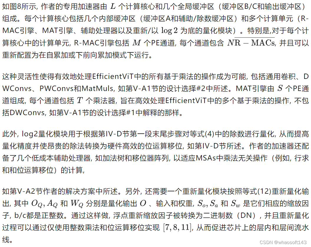 为了充分利用作者的算法优势,开发一个专用的加速器用于量化EfficientViT [12]是非常必要的。然而,这带来了几个挑战, 因为(i)EfficientViT内部存在多种操作类型, 以及(ii)其轻量级注意力与标准ViTs [4, 5]中的普通自注意力计算模式不同。