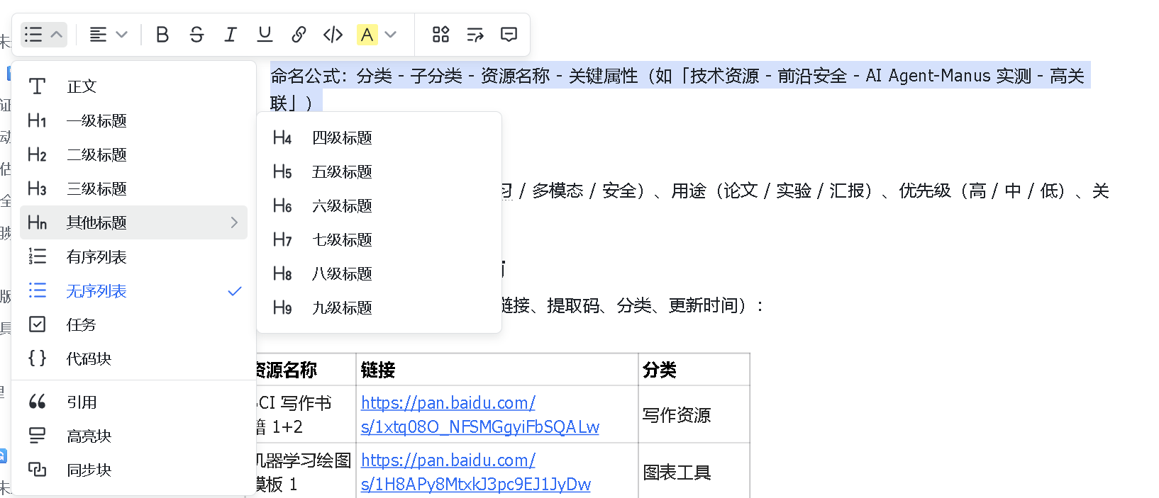 科研人必备:飞书一站式知识库搭建——创建目录/多级标题划分