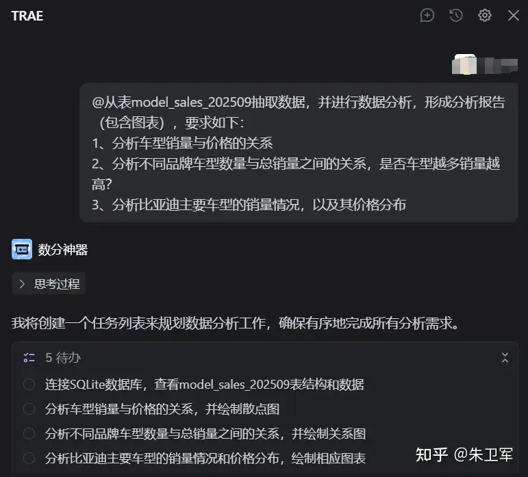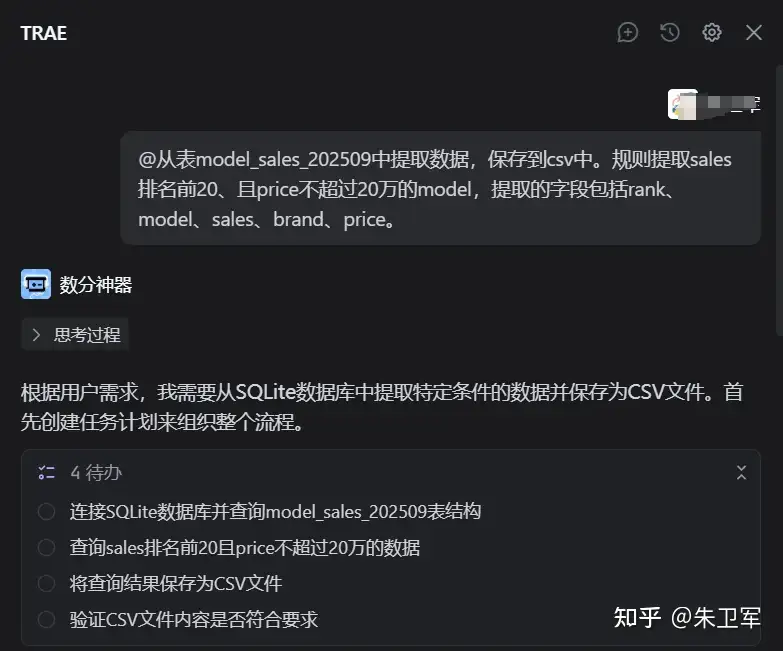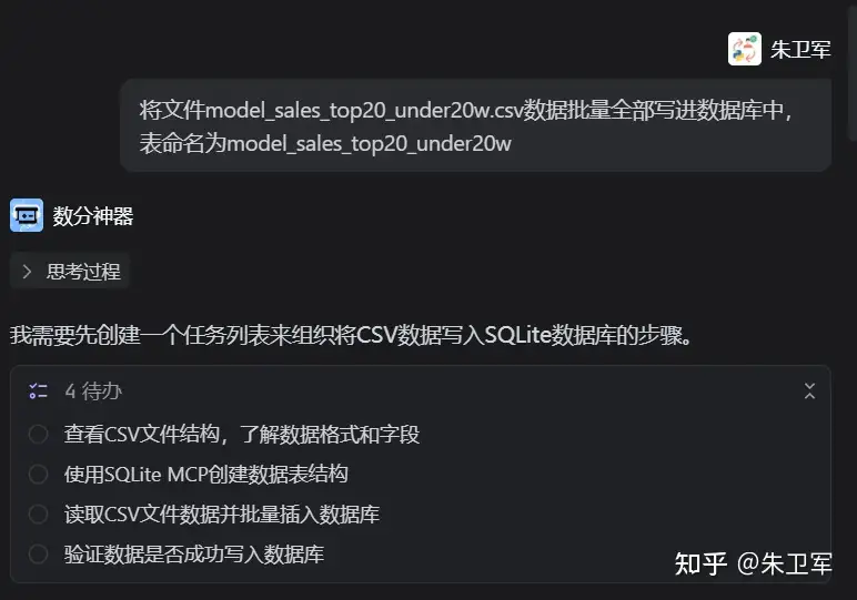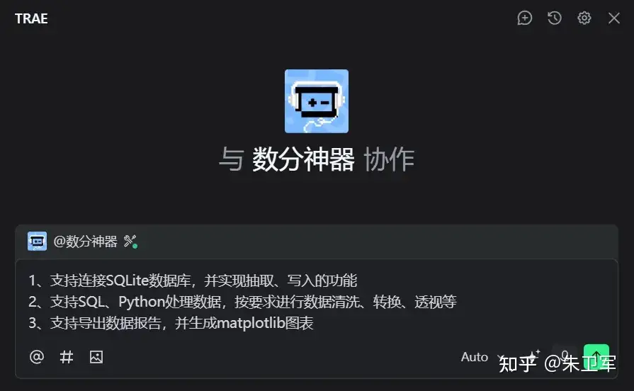 其实agent并不是宏大的概念,很多工作中的小事情可以让agent实现,比如我用Trae+MCP+SQLite搭建了一个自动化数据处理的agent,名叫“数分神器”,算是落地可以用的场景,有以下3个核心功能: