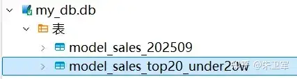 最后,表model_sales_top20_under20w成功出现在了SQLite数据库中。
