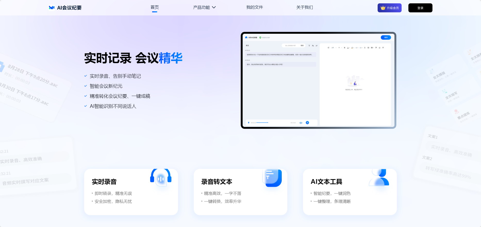 这款专注于语音转写和内容分析的AI工具,堪称会议记录的利器。它能实时记录并智能提炼会议重点,让你全身心投入讨论。