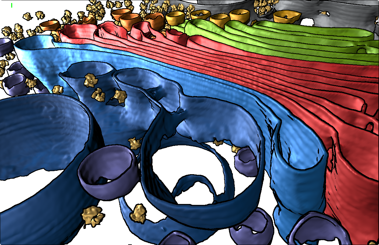 The following images higlight the benefit of the outline effect (see on the right) on some details of a Golgi apparatus: