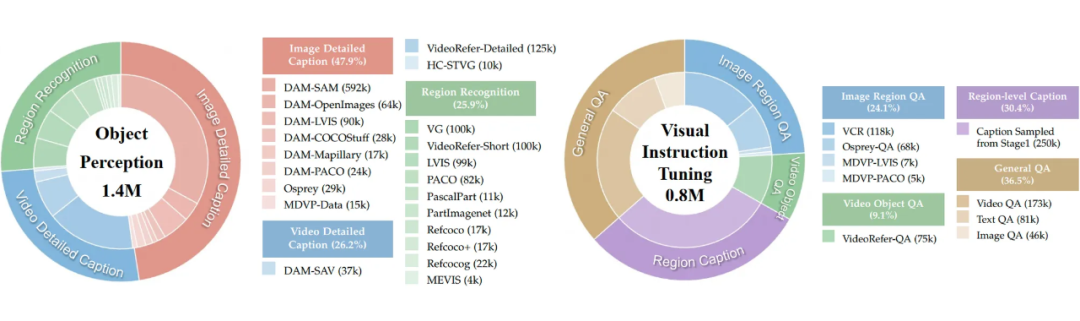 - 构建大规模区域级指令数据集 PixelRefer-2.2M,包含细粒度物体感知与全局视觉指令微调数据。