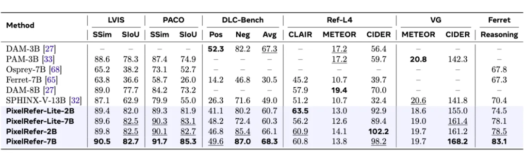 - 引入 PixelRefer 与轻量化 PixelRefer-Lite 方法,实现高效像素级理解的同时,保持视觉语言模型本身通用视觉理解能力;
