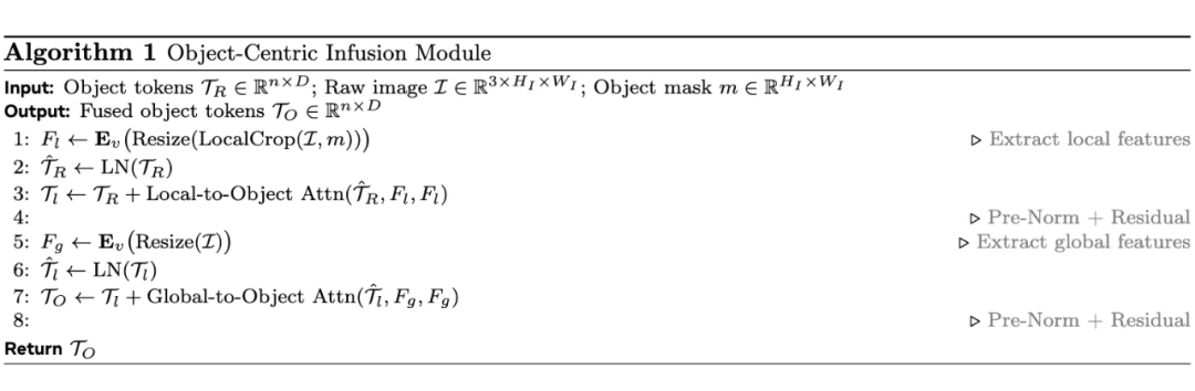 Object-Centric Infusion Module(OCI),该模块采用分层注意力机制,在局部与全局两个层面逐步注入视觉特征。通过 Local-to-Object 和 Global-to-Object Attention,使目标的表征同时具备细节感知与全局语义,从而实现更完整的上下文融合。