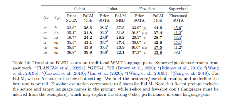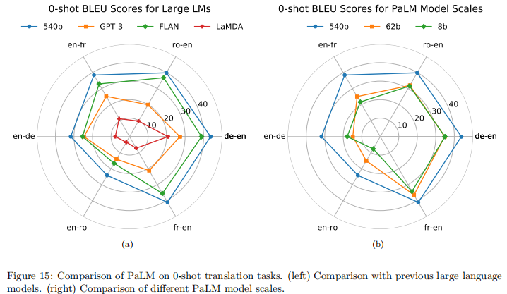 PaLM 未专门训练平行语料,但仍展现出强大的翻译能力: