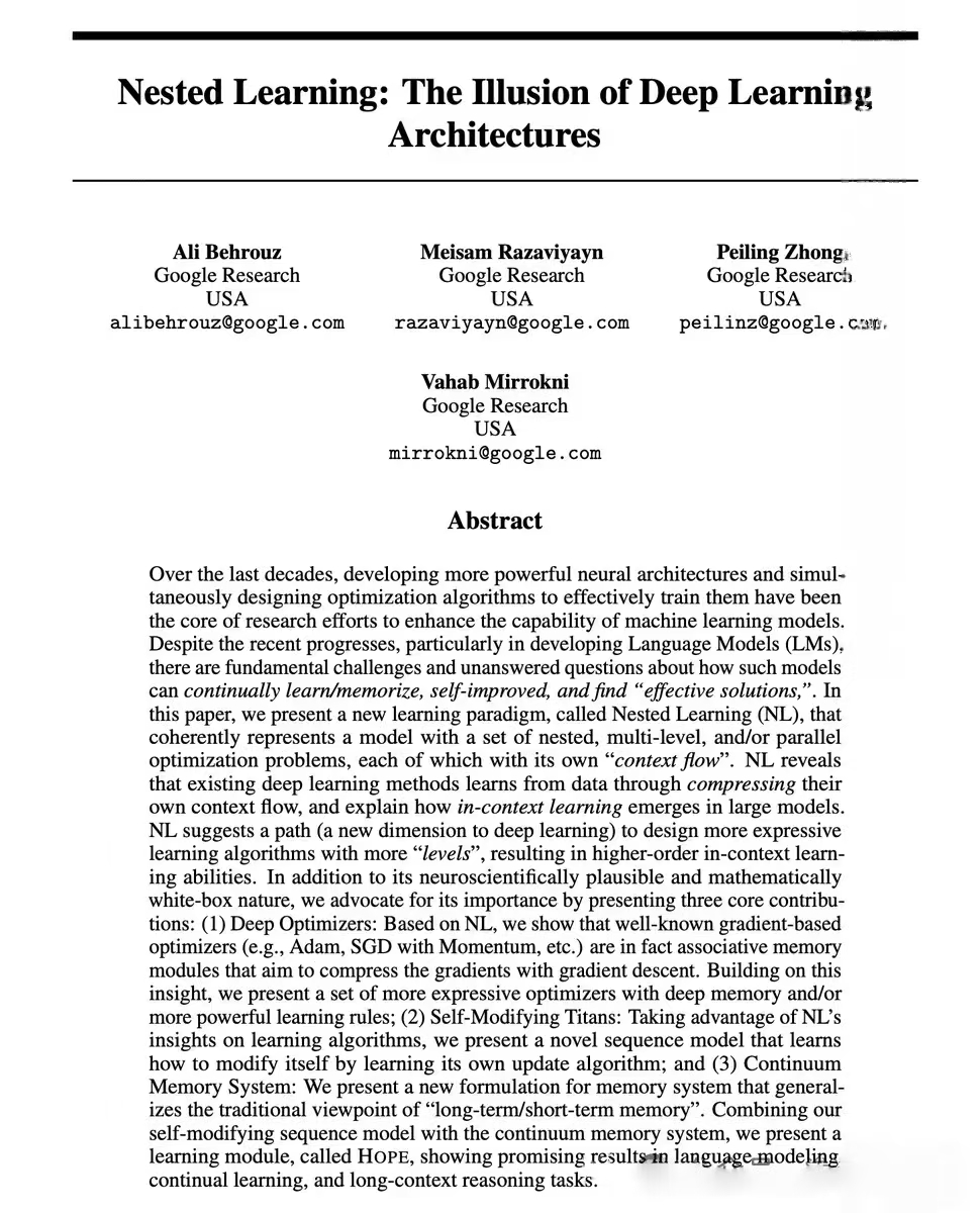 谷歌提出的V2注意力机制通过嵌套学习架构(Nested Learning)解决了这一难题:
