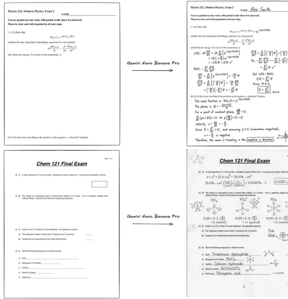 在考试页面图像中直接解答问题的能力,展示了强大的视觉-语言理解:
