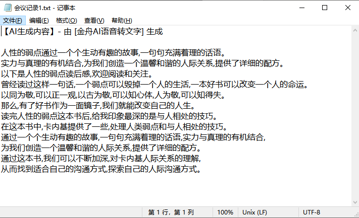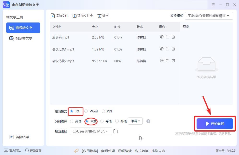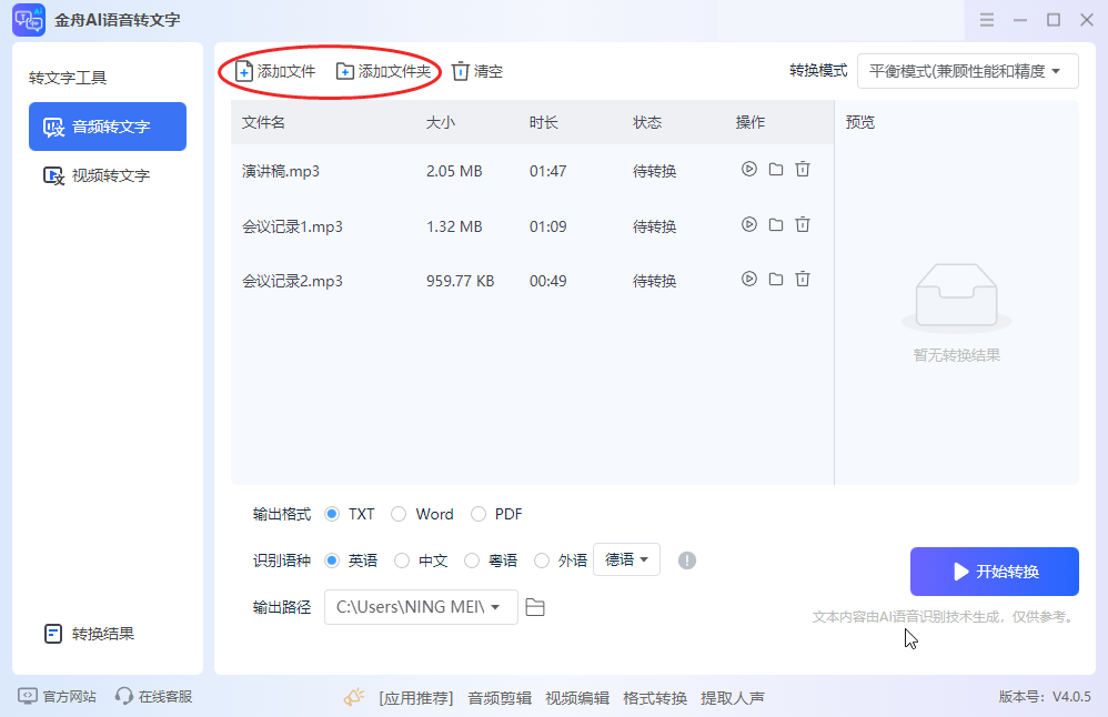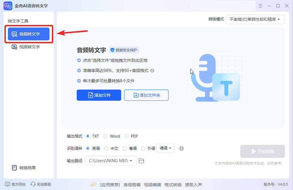 工具一:金舟AI语音转文字(Windows系统首选)