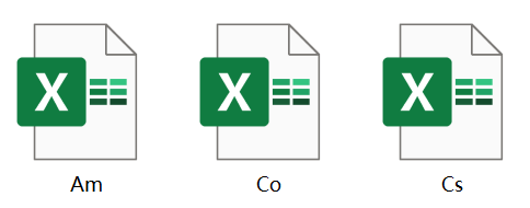 操作:假设我们收集了 3 类指令,分别存储在 3 个 Excel 文件中(Cs.xlsx, Co.xlsx, Am.xlsx)。
