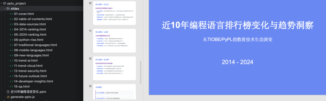 比如写了个 ppt,如果直接使用 claude 写,他是会先收集资料,然后写个脚本来转成pptx。