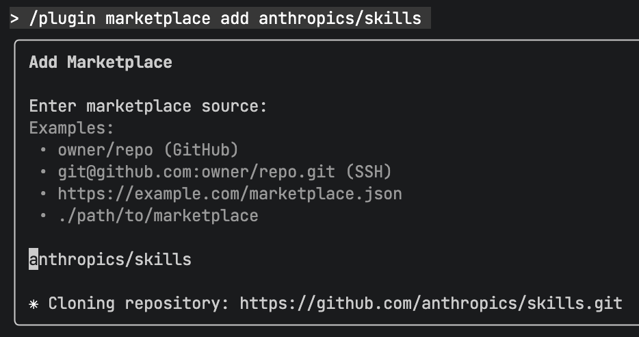 /plugin marketplace add anthropics/skills