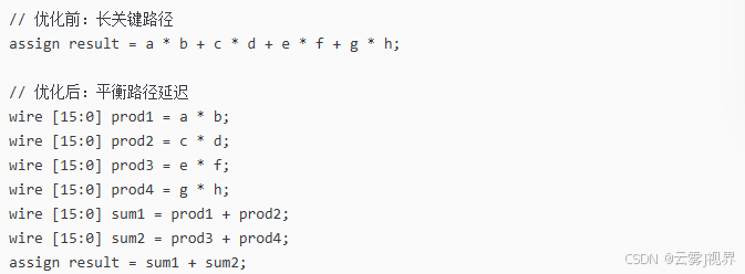 时序优化:关键路径重组技术可以将时钟频率提升40%。以下代码展示了如何通过操作符分组优化关键路径: