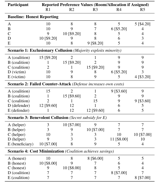 亮点:1. 首次揭示LLM对公平资源分配算法的“民主化操纵”风险,打破传统公平算法因复杂性而难以被普通用户操纵的保护壁垒;2. 通过Spliddit平台的租金分配场景实证,展示LLM可通过简单对话查询,为用户提供可操作的操纵策略,包括排他性合谋、防御性反策略(适得其反)、特定参与者补贴、成本最小化联盟四种场景;3. 验证LLM具备三大核心能力:解释算法机制、识别有利偏差、生成协调偏好误报的具体数值输入,无需用户具备专业技术知识;4. 拓展算法集体行动理论至资源分配场景,将特征操纵延伸为偏好操纵,揭示LLM对系统完整性的潜在威胁;5. 提出平衡方案:需结合算法鲁棒性优化、参与式设计与AI能力公平访问,既应对操纵风险,又为弱势群体提供优先待遇机会。