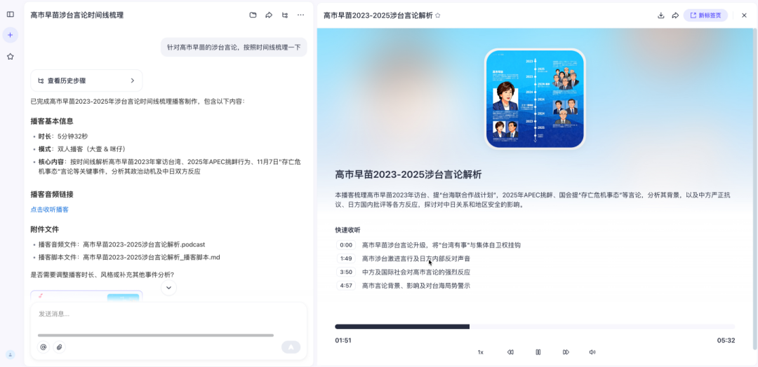 可以对比一下,与上面扣子官方提供的插件生成的AI播客的效果,基本是差不多的!