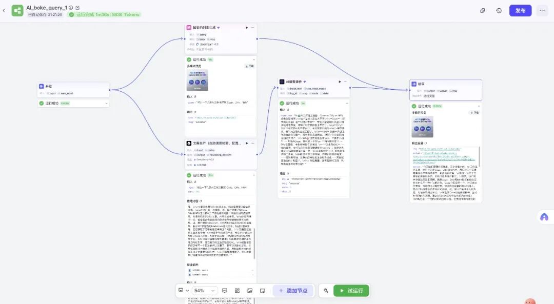 整个流程非常的简单:利用大模型节点、AI播客插件、封面图生成插件,快速搭建工作流: