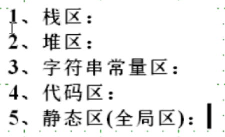 例:char s[10] = "Hello" 其中s在栈区,“Hello”在字符串常量区