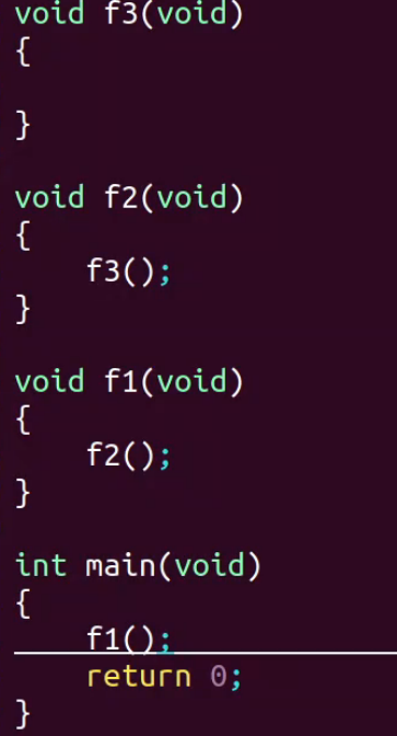 当开始运行f1时,需要调用f1,而为了防止调用函数f1后无法回到main函数中,需要把main的地址保存下来,即入栈,所以此时在栈的最底层则是main的位置,此过程也被称为保护现场,而同理,f1和f2也接连入栈,于是在出栈时,顺序便是f2,f1,main,此过程也被称为恢复现场。Linux系统栈区内存大小为8G,Windows为1G