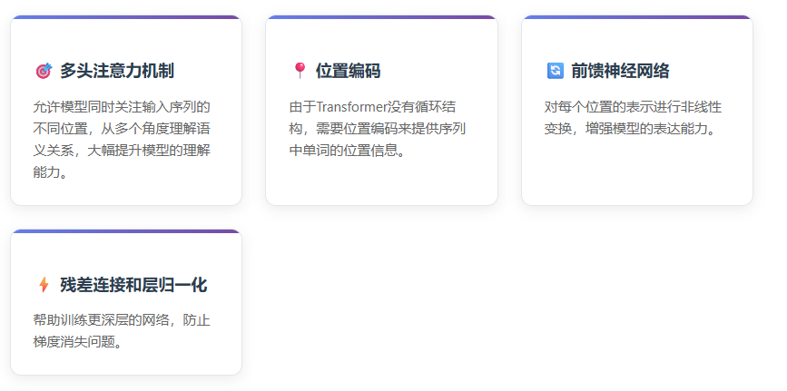 允许模型同时关注输入序列的不同位置,从多个角度理解语义关系,大幅提升模型的理解能力。