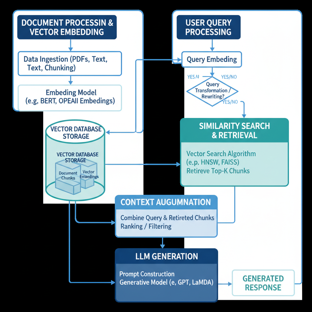 想象一下,如果LLM在回答问题前,可以先像人类一样“查阅资料”,那么它的回答将会多么准确和及时。这正是**检索增强生成(RAG, Retrieval-Augmented Generation)**的核心思想。