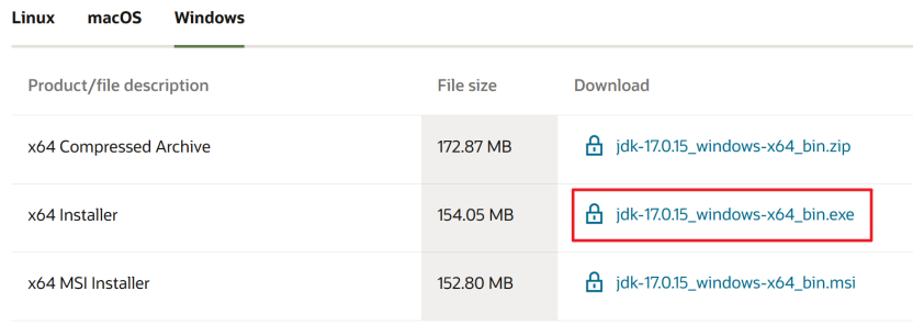 Neo4j的运行需要Java环境,根据官方文档要求,5.26(LTS)版本的Neo4j需要安装JDK17或者JDK21。JDK的安装包可从Oracle官网下载(需注册账号并登录),或者直接从课程资料中获取。