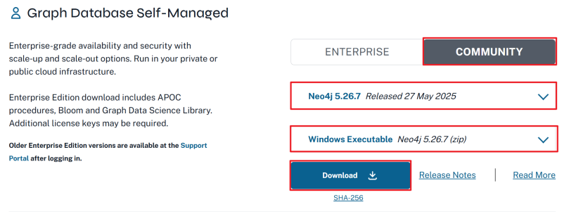本教程选用OS Deployment方式,部署环境为Windows系统,Neo4j版本为5.26(LTS)。