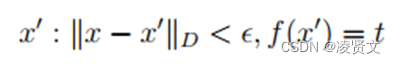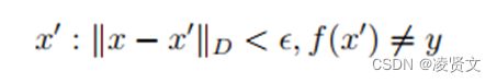 其中∥.∥_D_代表着对抗样本与原样本之间的某种距离度量,为了使修改的样本能够保持语义信息不造成人类的察觉,两者之间的距离应该足够小,同时造成最后模型判断出现错误,分类结果不同于正确类别,而_ϵ_就是对抗样本与原样本之间设定的最大距离,其取值往往和具体的应用场景有关。
