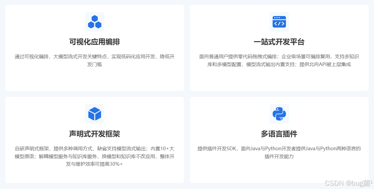 - 主打“下一代 AI 应用与 Bot 开发平台”,对非技术人员非常友好;