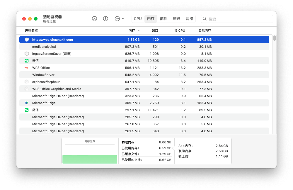 同事的计算器进程关闭后,瞬间释放 40GB 内存,电脑立马恢复响应。注意优先处理苹果自带应用,这类程序在新系统中更容易出现内存暴走。